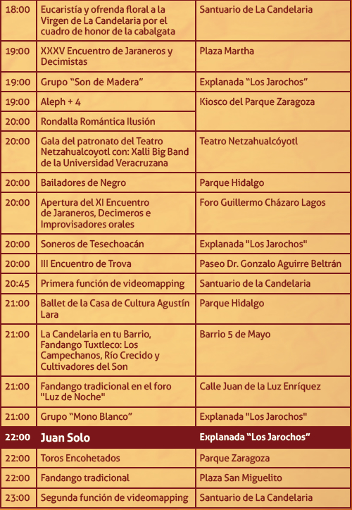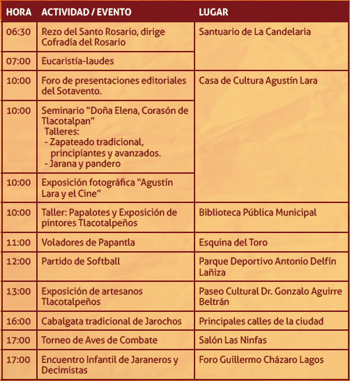 Programa de actividades de la Fiesta de la candelaria 2014, Tlacotalpan Veracruz.