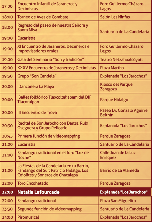 Programa de actividades de la Fiesta de la candelaria 2014, Tlacotalpan Veracruz.